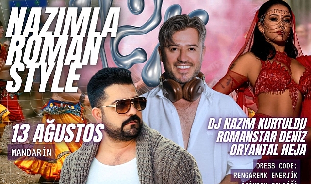Hem kendi doğum gününü coşkuyla kutlayacak olan Nazım, hem de Roman Style konseptiyle renkli, enerjik ve içten bir geceye ev sahipliği yapacak.Nazım Kurtuldu, geniş hayran kitlesi ve benzersiz müzik seçimleriyle tanınıyor. Bu özel gecede, canlı DJ performansı ve Roman kültürünün coşkusunu yansıtan sürprizlerle dolu bir program izleyicileri bekliyor.Gecenin dress code’u ise tam da Nazım’ın tarzına uygun: “Rengarenk, enerjik ve içinden geldiği gibi!” Katılımcılar, kendilerini özgürce ifade edebilecekleri ve pozitif enerjiyi paylaşabilecekleri bir atmosferde buluşacak.Siz de bu eşsiz kutlama ve Roman Style partisini kaçırmayın! Nazım Kurtuldu ile dans, müzik ve renklerin büyüsüne kapılmaya hazır olun.Tarih: 13 Ağustos 2025Yer: Mandarin, İzmirSaat: 21:00
